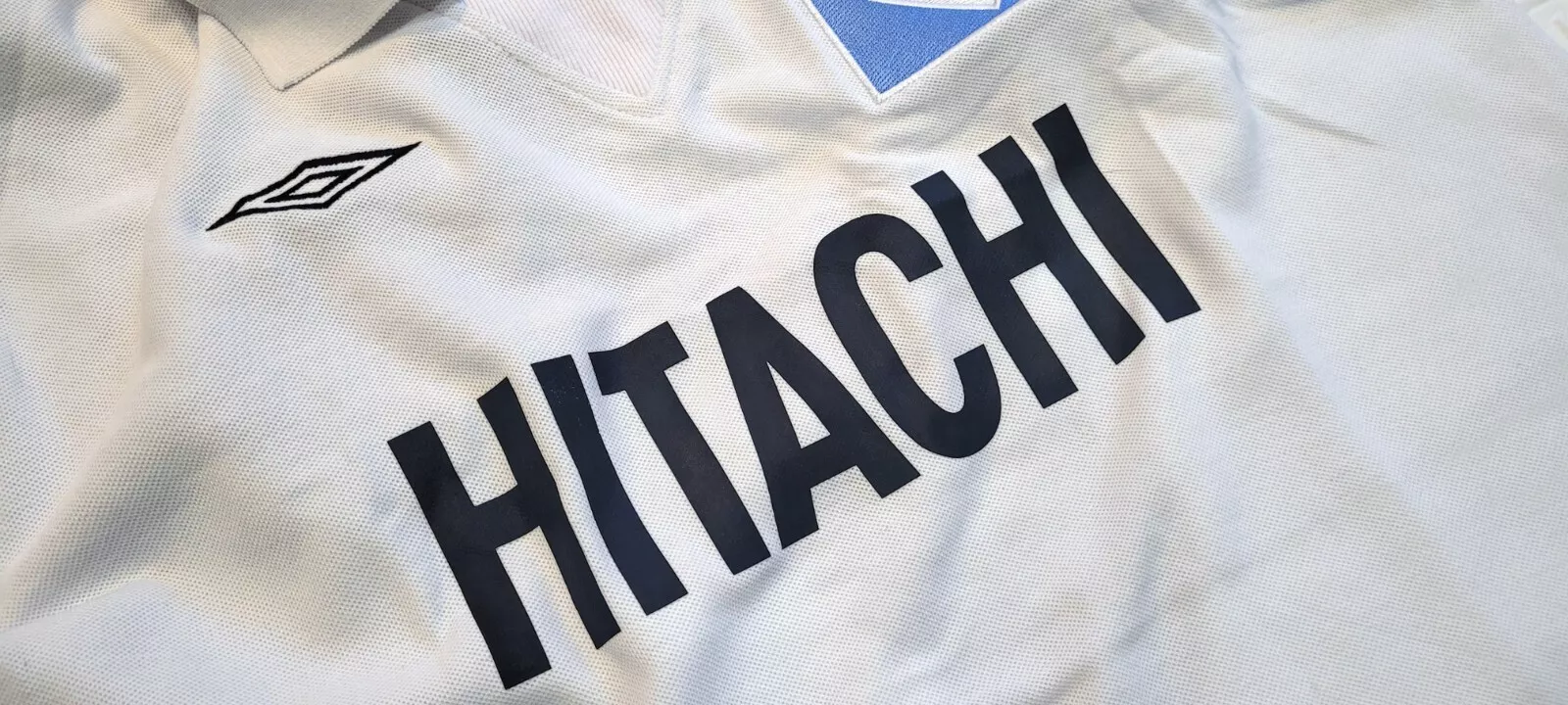 This shirt was for the 1974-1975 season, long sleeve and 100% cotton. The badges and logos are embroidered, while the famous HITACHI logo is printed.